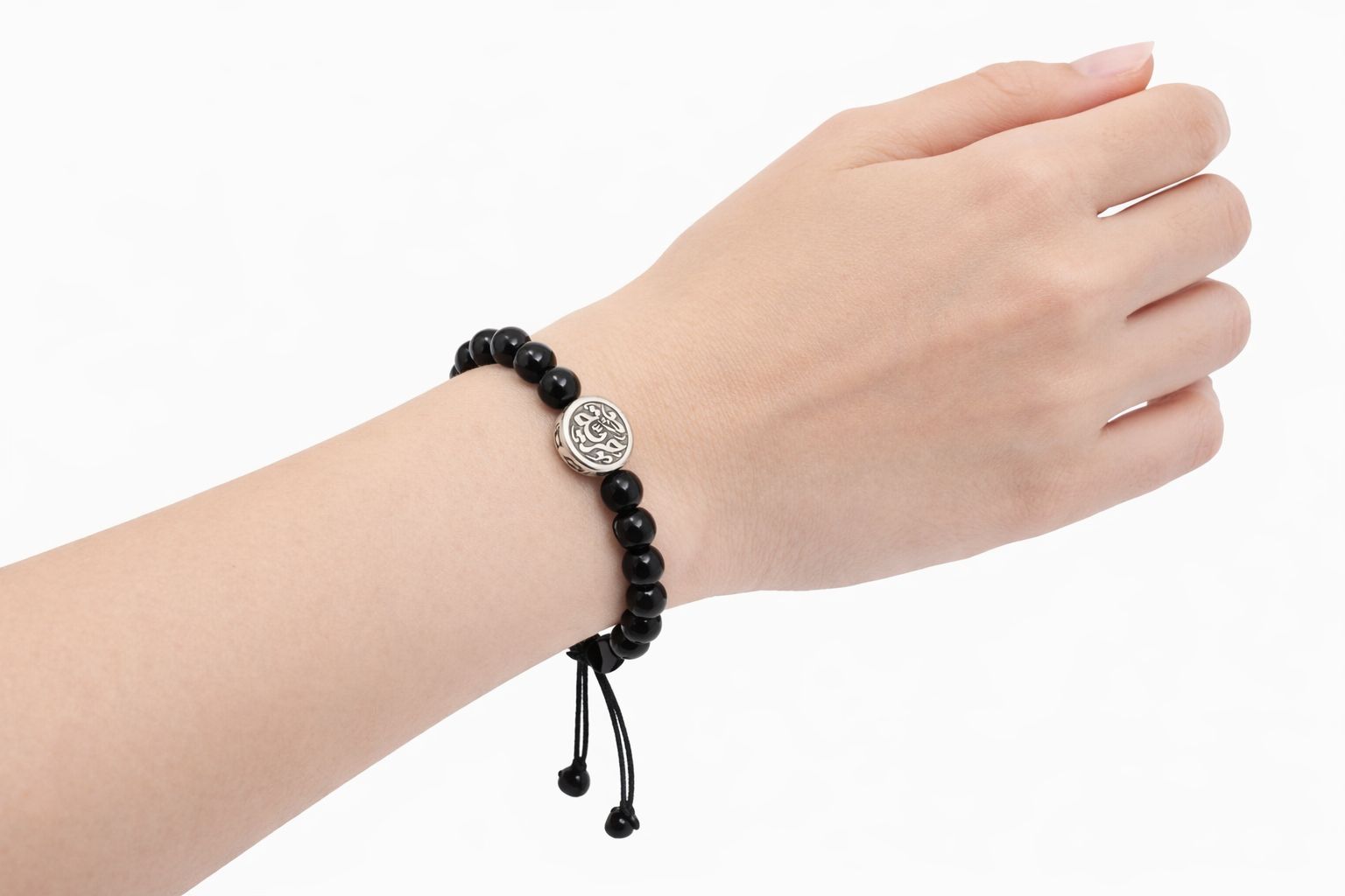 تم تنفيذ السوار باستخدام خيط أسود متين قابل للتعديل، ليتناسب مع مختلف مقاسات المعصم، مع تشطيب يدوي متقن يبرز جودة الخامات ودقة التفاصيل.